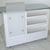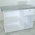 Rezeption, Struktur aus lackiertem silber-weiß-schwarzem Holz, Plexiglasplatte, Schublade mit Schloss.