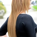 Bonding: Das flexible Keratin hat eine neutrale Nuance die sich jeder Haarfarbe anpasst und daher beinahe unsichtbar wird.